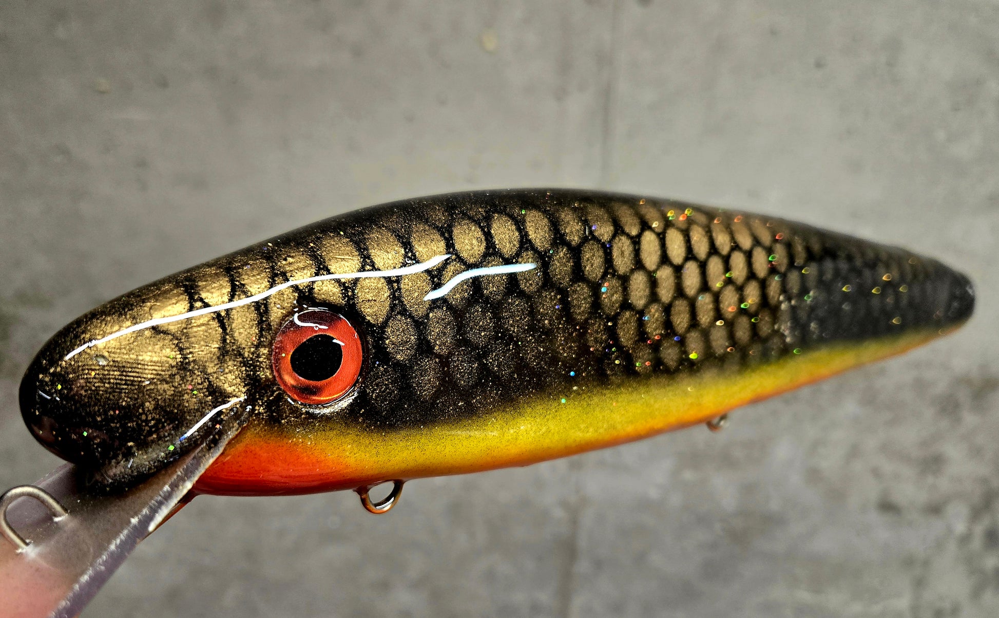 With a wild stuttering and walking action the Larry was designed to catch giants off of weed edges on the St. Lawrence River. Since its inception, it has proven effective on many big fish waters. One of the only solid-bodied synthetic baits to provide such incredible movement when trolled from fast to slow. The Larry has a big bait feel with a shallower dive curve.